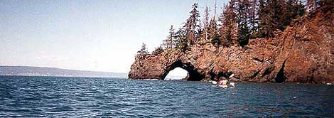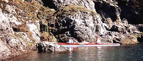 The next day, we take a water taxi across Kachemak Bay to Rusty's Lagoon in Kachemak Bay State Park. Well spend the next five days sea kayaking in and around the parks fjords, coves, lagoons and islands; hiking up to glaciers and tundra; walking along beaches; identifying marine life in the numerous tidal pools; watching thousands of nesting sea birds; seeing sea lions, sea otters and bald eagles; looking for evidence of black bears and wolves; camping next to the seashore; and, all in all, enjoying ourselves.